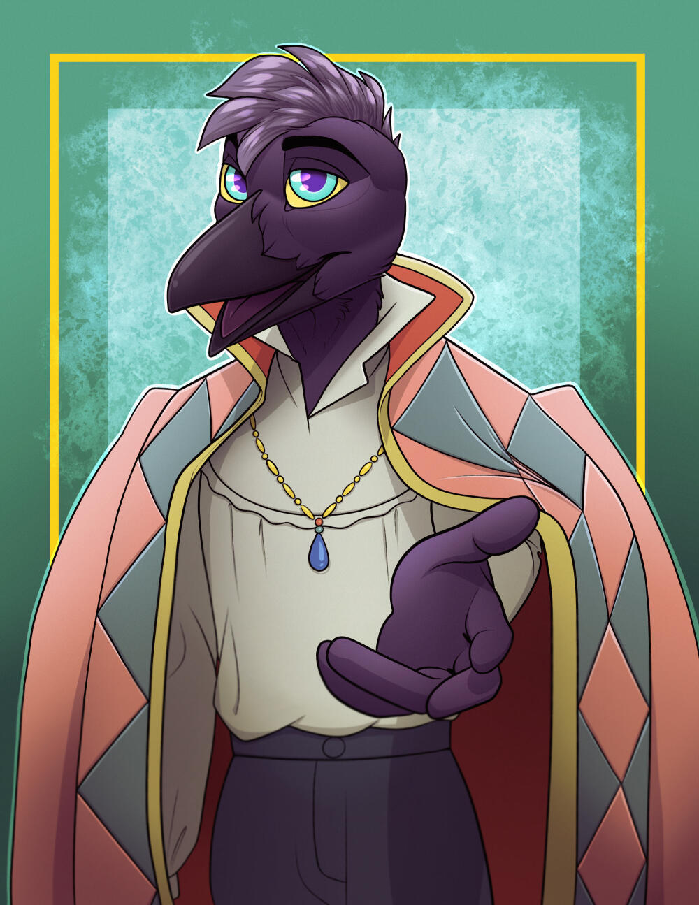 A square canvas including a lined, colored, and detail shaded bust (shoulders up) with simple background. Can be any furry species/gender/body type.A sketch WIP will be provided.